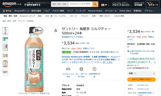 Suntory Oolong Milk Tea will be released on November 4, 2025, with a manufacturer's suggested retail price of 210 yen (excluding tax). It is also available on Amazon.jp, where a set of 24 bottles can be pre-ordered for 3,534 yen (including tax) (147 yen per bottle including tax).