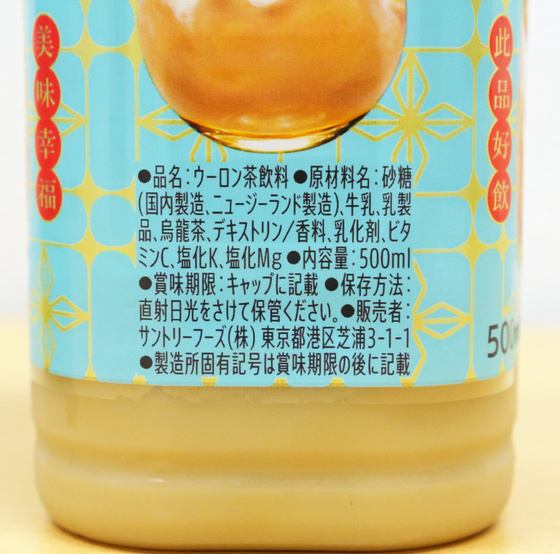 Suntory Oolong Milk Tea is an 'oolong tea beverage' and contains sugar, milk, dairy products, oolong tea, etc. The volume is 500ml.