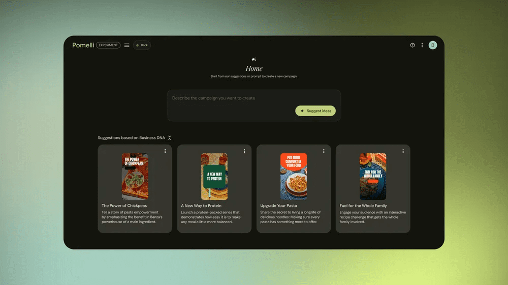 Once your business DNA is established, Pomelli generates advertising ideas specifically for your brand, either automatically or with user-provided prompts for specific guidance.