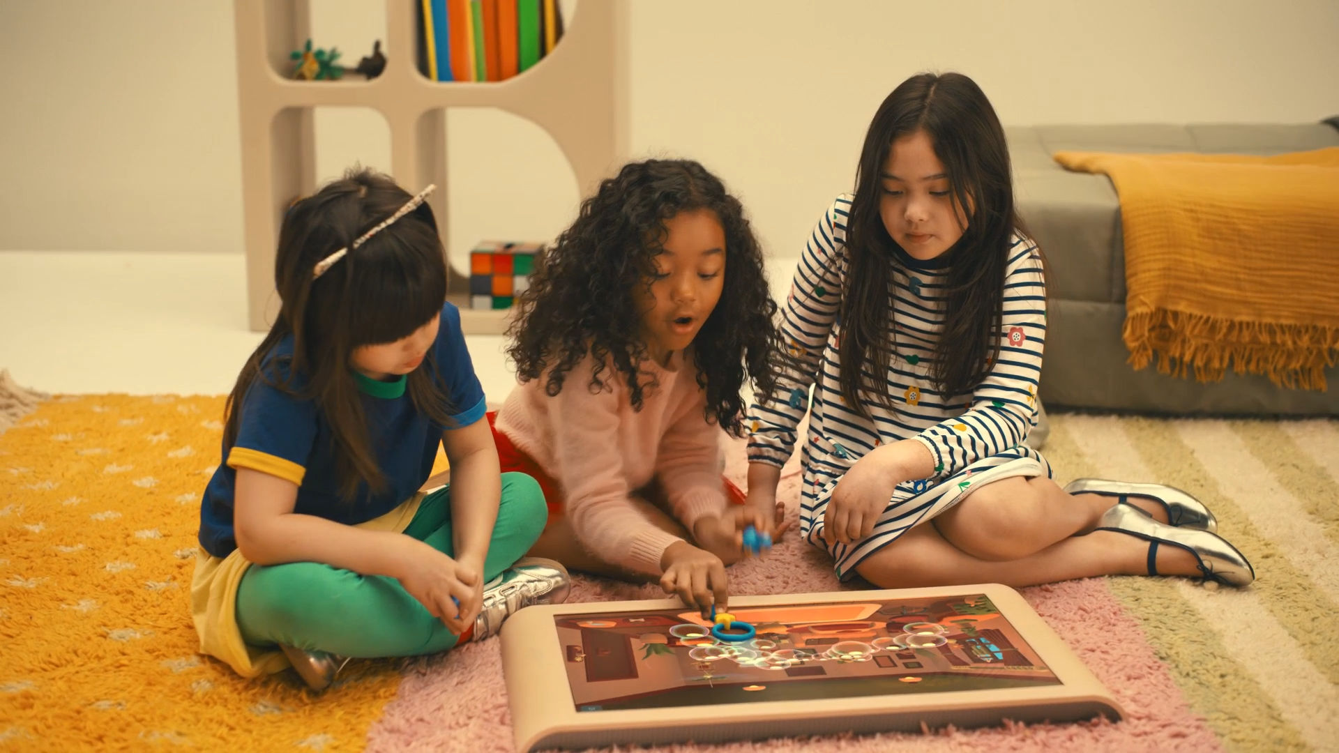 The Board boasts a massive 'interactive display' with a 24-inch display. It's built with premium materials for durability and is 'designed for years of play,' featuring scratch- and stain-resistant glass. It measures 65.278cm wide x 35.306cm long x 3.81cm deep.