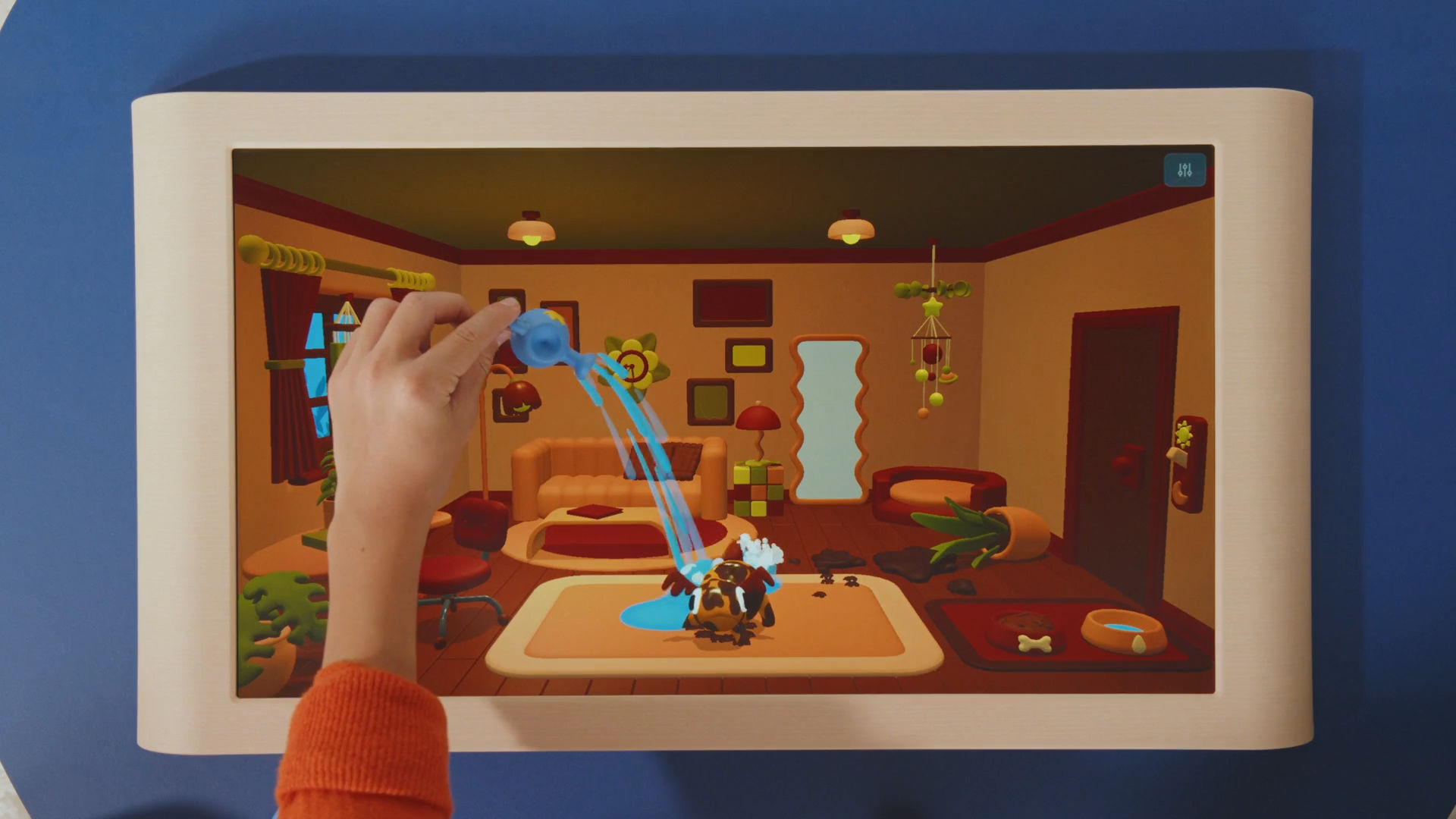 The game involves caring for Mushka, a digital pet that lives inside the board, using watering cans, brushes, hair dryers, wands, toy bags and more.