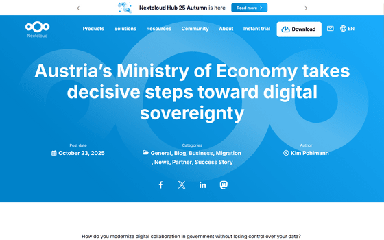 Austria's Ministry of Economy takes decisive steps toward digital sovereignty - Nextcloud