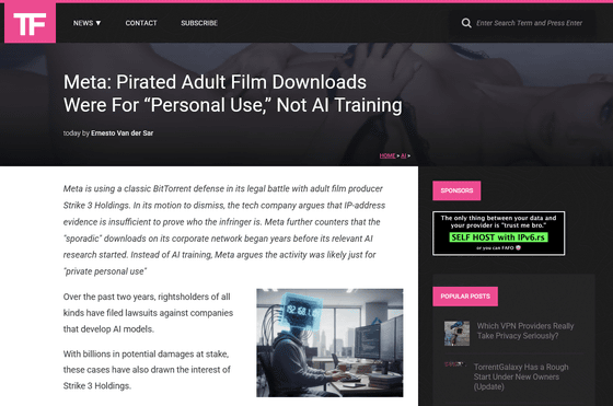 Meta: Pirated Adult Film Downloads Were For 'Personal Use,' Not AI Training * TorrentFreak