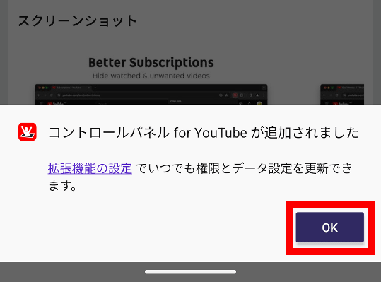 To install the 'YouTube Control Panel,' access the link above using Firefox for Android and tap 'Add to Firefox.'