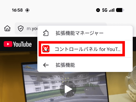 Example of 'Control Panel for YouTube' add-on that allows background playback of YouTube on Android Firefox - YouTube