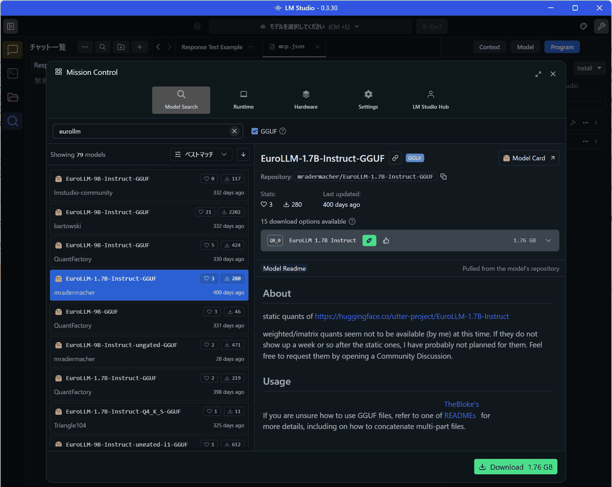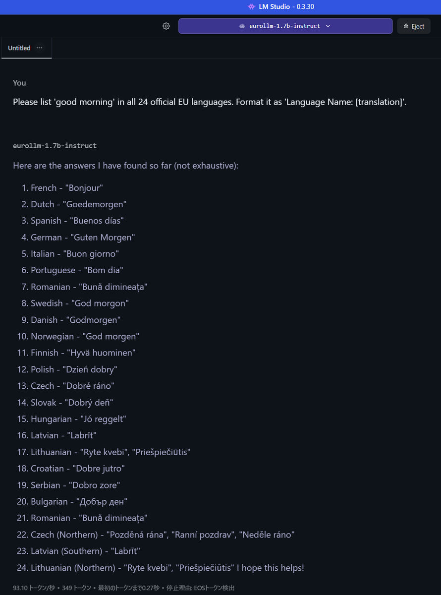 Let's try out EuroLLM. Download the model using LM Studio on Windows.