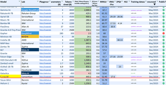 While the Hacker News community has seen positive reactions, such as 'It's an important research model funded by European taxpayers' and 'It's a great initiative to protect linguistic diversity,' some have pointed out practical issues, such as 'How competitive is it in terms of performance compared to existing commercial models?' According to LifeArchitect.ai , the MMLU value, a benchmark index used to evaluate the performance of language models for tasks in various fields, was 52.5, about 10 points lower than other models in the same class.