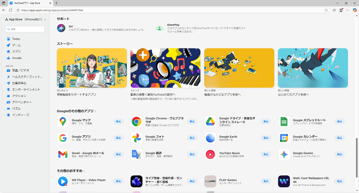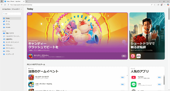 Clicking the link above on your PC browser will take you to the web version of the App Store. Here's what the screen looks like when accessed using Windows Edge. The Today page, which lists apps for iPhone, appears.