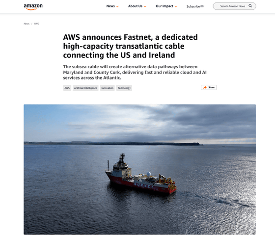 The construction of Fastnet and other projects is also expected to create numerous jobs and stimulate industry. Irish Prime Minister Michal Martin said, 'Amazon's new transatlantic submarine cable, Fastnet, is a testament to our confidence in the future of Ireland's digital strategy and will accelerate the next wave of innovation in cloud computing and AI. Connecting County Cork and Maryland will make Ireland a true gateway to Europe for undersea communications cables, improving Ireland's global connectivity and strengthening our economic competitiveness.' Maryland Governor Wes Moore added, 'The construction of Maryland's first undersea fiber optic cable will solidify Maryland's position as a global hub for innovation, job creation, and high-tech investment.'