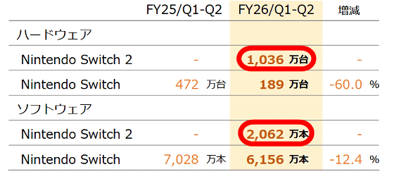 Nintendo announced its second-quarter financial results for the fiscal year ending March 2026 on November 4, 2025. The published documents stated that sales of the Nintendo Switch 2 reached 10.36 million units in the four months since its release.
