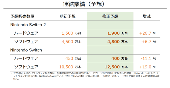 Nintendo has revised its sales forecast for the fiscal year ending March 2026 upwards in response to the strong performance of the Nintendo Switch 2. By March 2026, the company expects to sell 19 million Nintendo Switch 2 consoles and 48 million games.