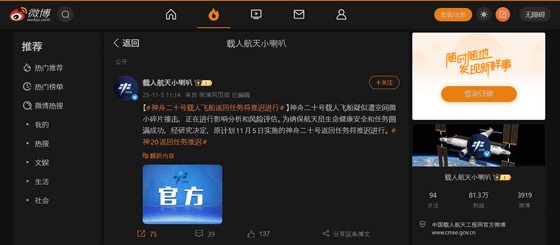 [#Shenzhou 20th issue 载人飞... - @载人空天小喇叭's Weibo - Weibo