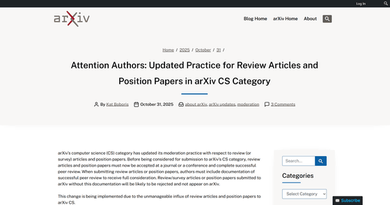 In the comments section of the arXiv blog, some people pointed out that 'research papers need to be up-to-date, and that their content may become outdated while waiting for peer review.' Furthermore, some people fear that the peer review process itself is losing credibility due to the rise of 'predatory journals,' while peer review for high-quality journals can take more than a year. They also fear that low-quality papers will be published on arXiv first and become established as 'standard references.'