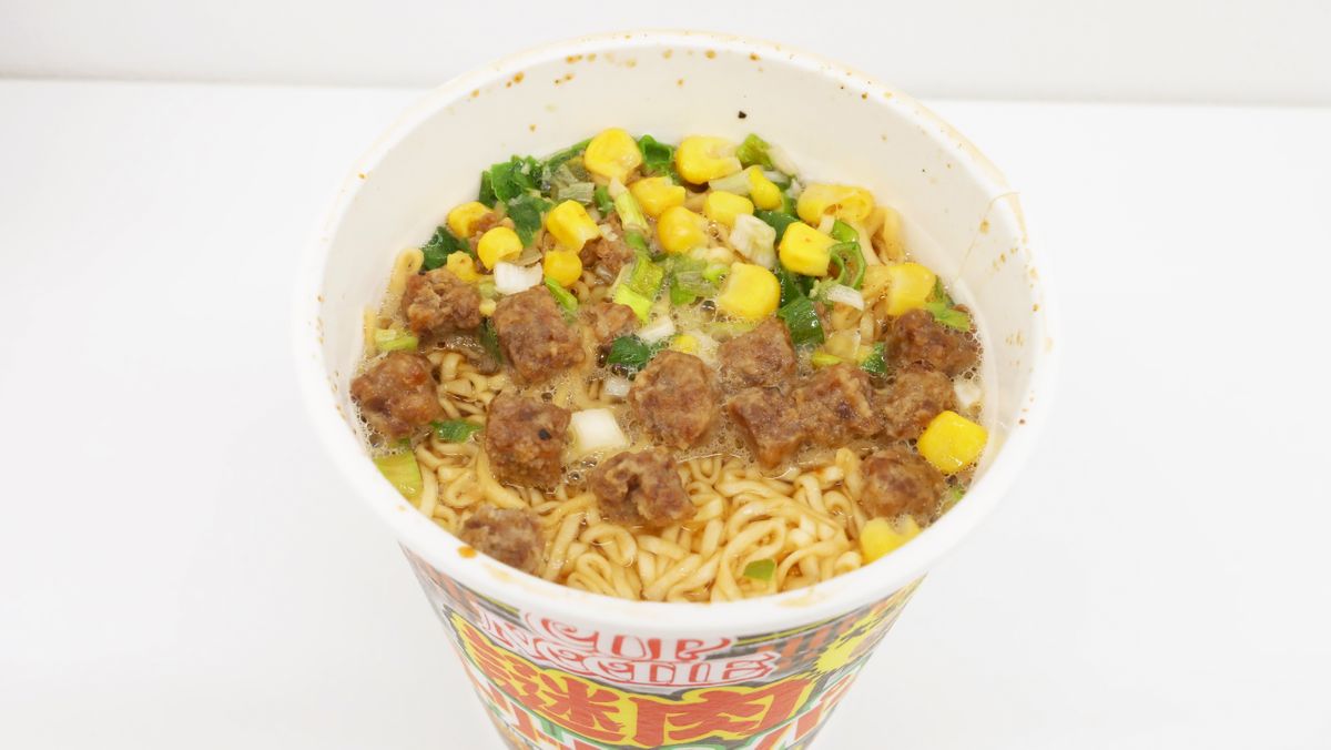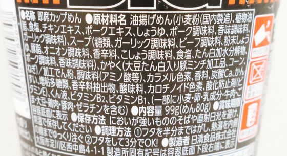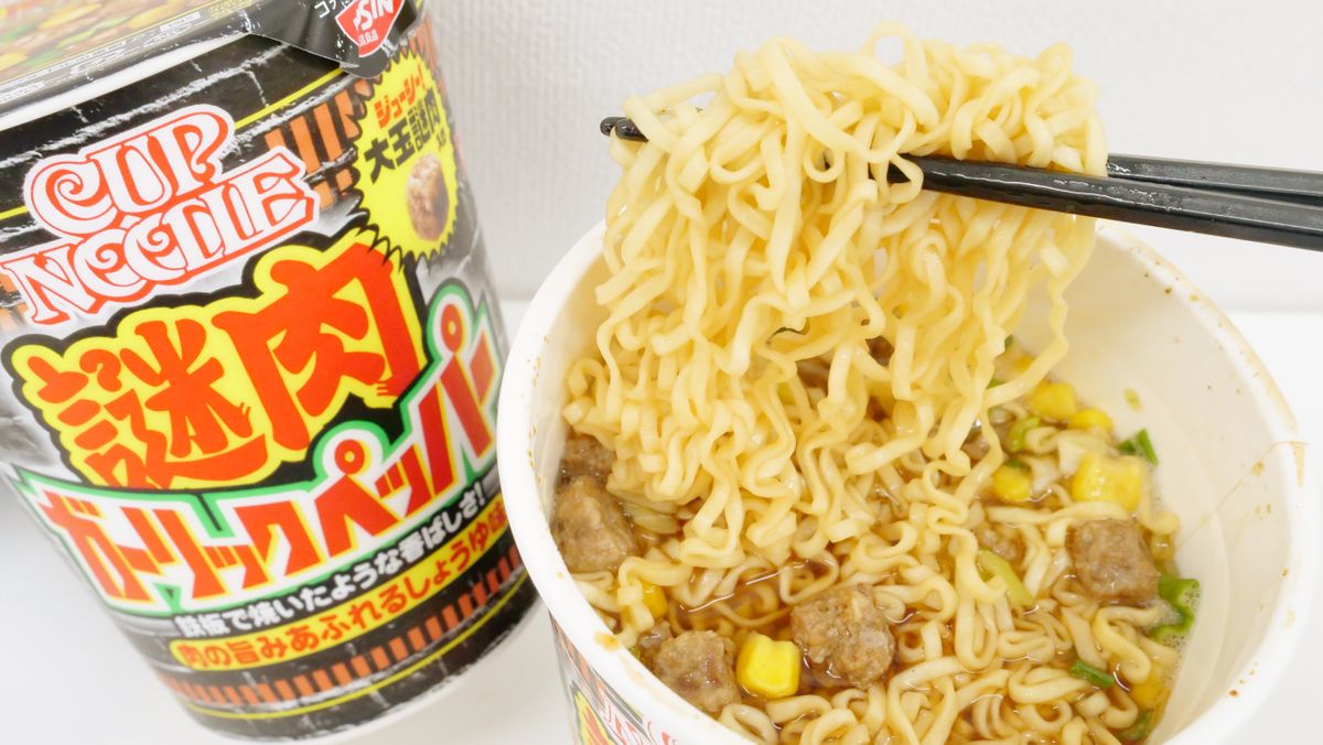 I tried 'Cup Noodle Mystery Meat Garlic Pepper Big' which has a strong garlic and pepper punch and makes you hungry