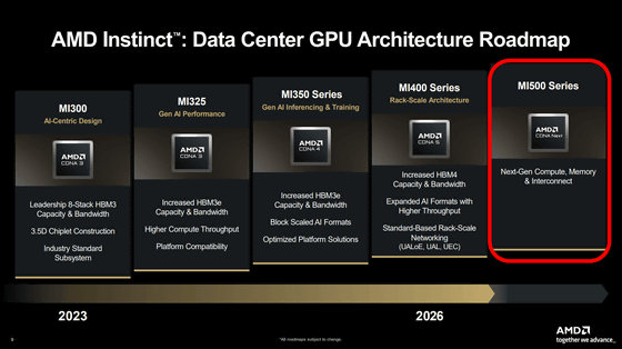 Regarding data center GPUs, the existence of the Instinct MI500 series has been revealed as the next generation of the Instinct MI400 series, which has been announced to be released in 2026.