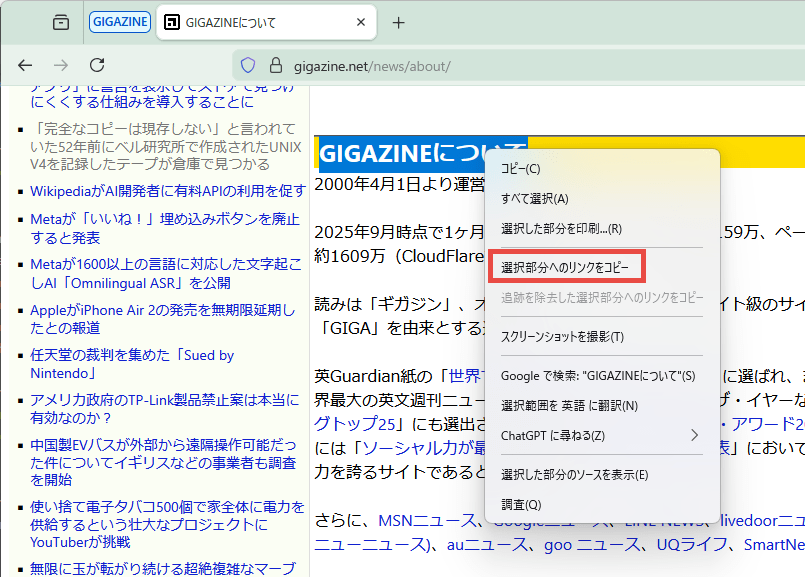 ◆ Copy link to selected part