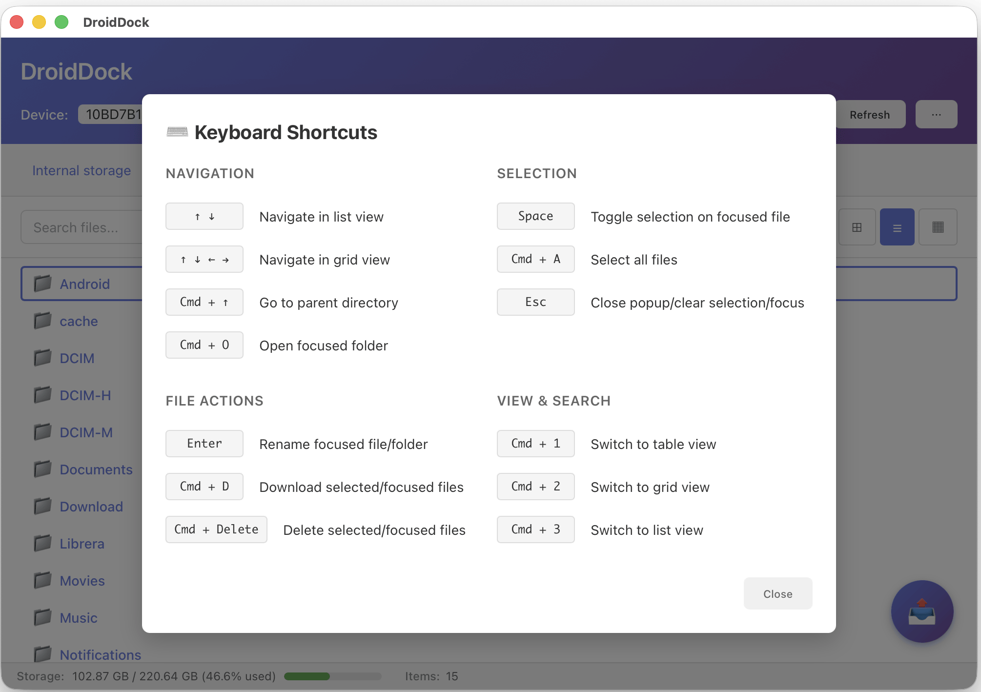 DroidDock - Browse Android Files on macOS