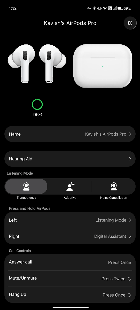 Battery Status: Shows the exact battery level of your AirPods on your smartphone screen.