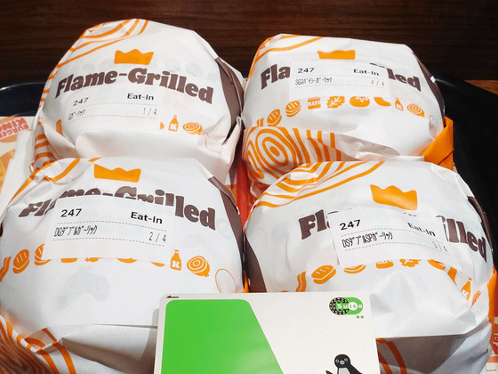 Just five minutes after ordering, our four burgers were ready. All of them were large enough to fit a public transport IC card.