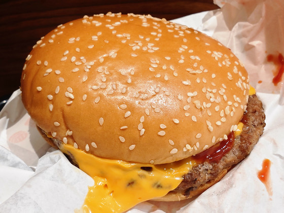 At first glance, it appears to be a standard hamburger with few vegetables. Since I normally consume a fair amount of garlic, I didn't find the smell particularly unpleasant or unpleasant, but those who limit their garlic intake might find it quite strong. While it's hard to tell because it's the same yellow color as the cheese, the generous amount of special garlic sauce rivals the flavor of the flame-grilled beef patty that usually dominates the Whopper's flavor. The tangy spiciness, including chili peppers and black peppers, asserts its presence and strikes a perfect balance with the meat.
