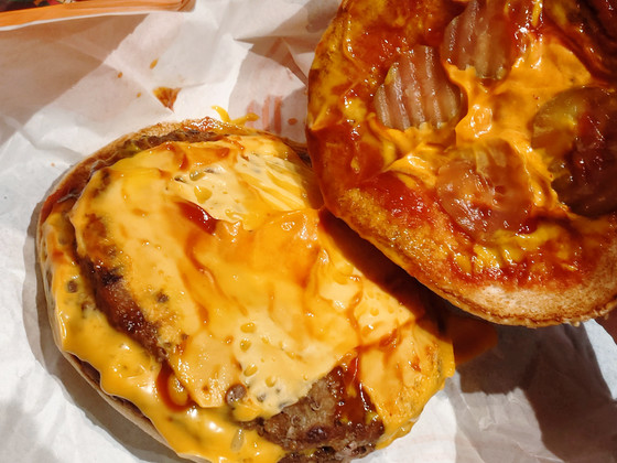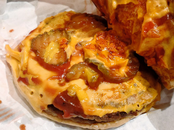 If you want to fully enjoy the garlicky flavor of the special garlic sauce, it's better to get a burger with a single patty.