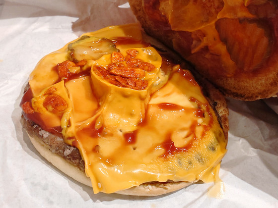 Spicy garlic flakes, which have a unique spiciness while retaining a crunchy texture, can be considered a simple power-up topping, and anyone who liked the 'Garlic Garlic Burger' will love this as a legitimate evolution.
