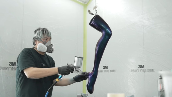However, they had trouble with this chameleon paint, as it didn't stick well and would peel off easily. As a result, they decided to remix the paint ingredients from scratch.