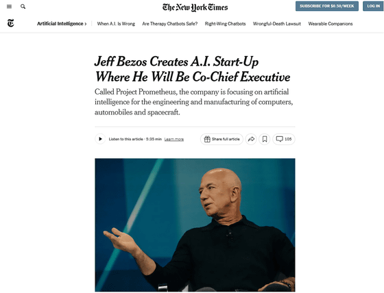 According to sources, Amazon founder Jeff Bezos has been appointed co-CEO of Project Prometheus , an AI startup he partially funded. Project Prometheus aims to develop AI to aid in engineering and manufacturing across a variety of fields, including space exploration and computing. The startup has raised $6.2 billion (approximately 950 billion yen).