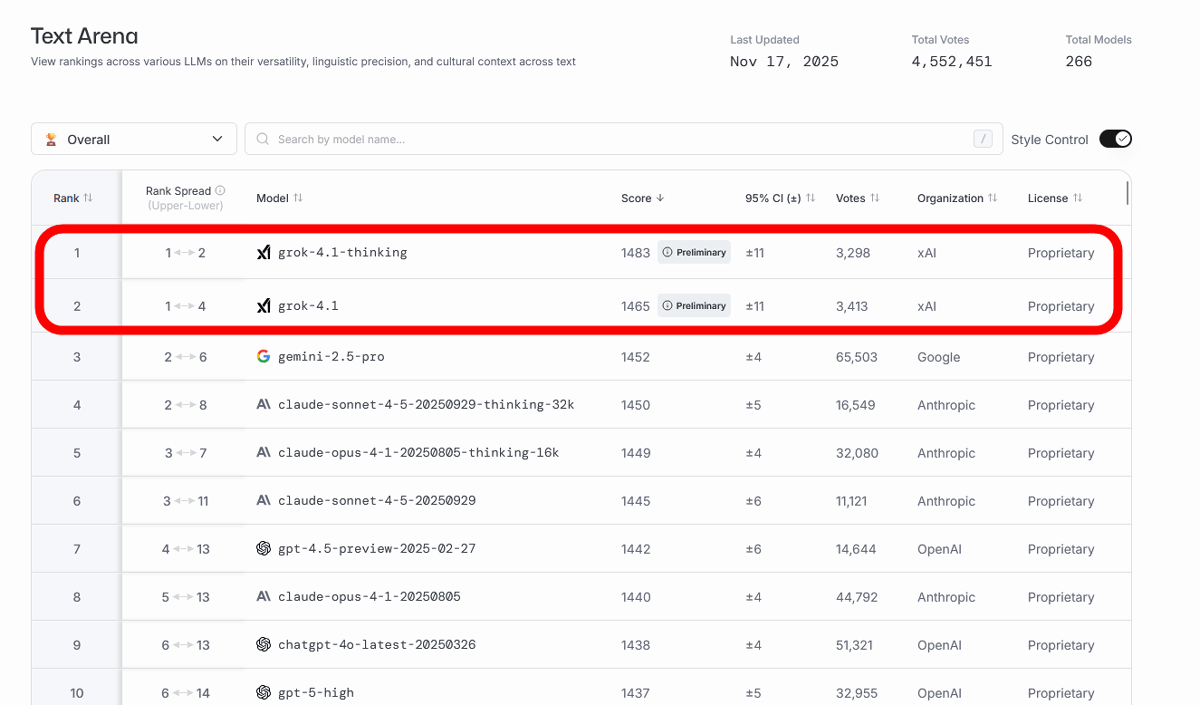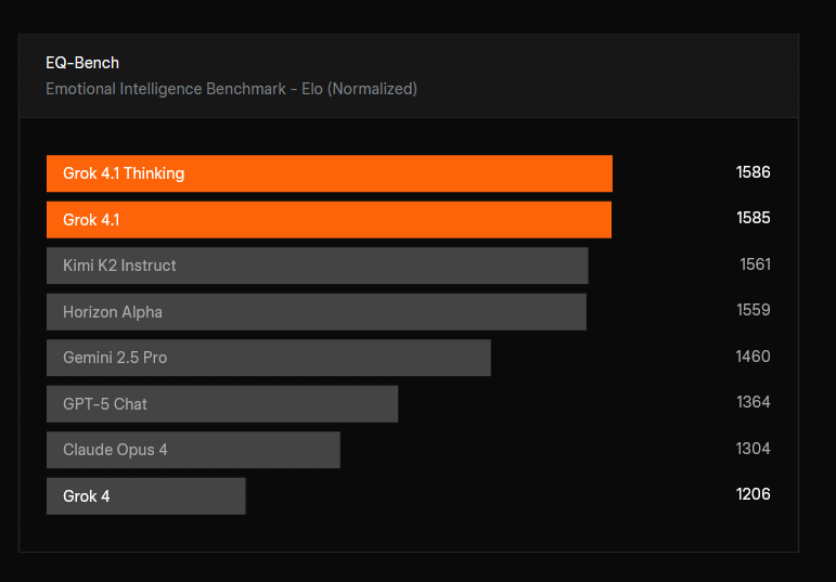 Grok 4.1 and Grok 4.1 Thinking also ranked in the top two on