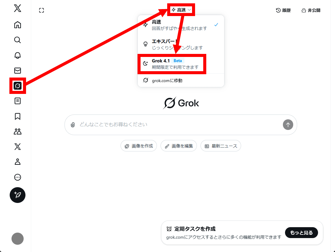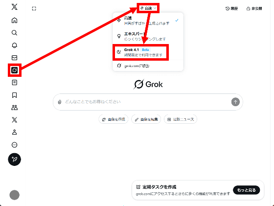 Grok 4.1 is available to all users, including those with the free plan for X and the Grok app. To use Grok 4.1 on the PC web app version of X, click the Grok button on the left side of the screen, then click the mode selection area at the top of the screen and click 'Grok 4.1.'