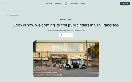 San Francisco, along with Las Vegas, was one of the areas where Zoox was conducting testing, and when the service began in Las Vegas, it was announced that 'San Francisco will be next.' The first test, called the 'Zoox Explorer Program,' will gather feedback before expanding the service. The service is free to use, and users can join the waiting list by registering through the app. Anyone can join the program and use Zoox by installing the app.