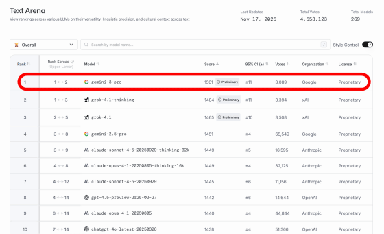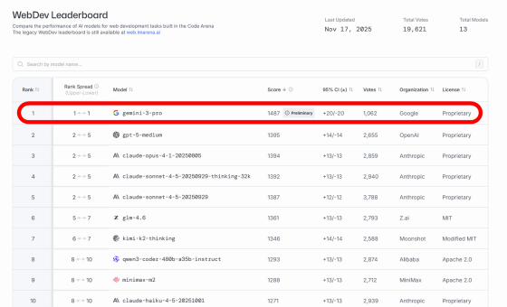 Google released its AI model ' Gemini 3 ' on Tuesday, November 18, 2025. Gemini 3 has outperformed competing models such as GPT-5.1 and Grok 4.1 in various benchmarks and is already available for free.