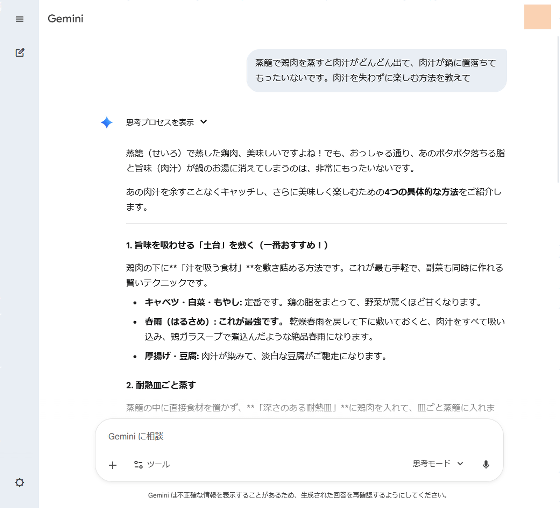 Click Thinking Mode, enter a question, and Gemini 3 Pro will respond. According to Google, Gemini 3 is powerful enough to understand the context and intent behind the user's instructions and respond accordingly. In this case, I entered a vague question, and even made a typo, writing 'ochi' (fall) as 'okiochi' (place fall), but the Gemini 3 Pro carefully interpreted it and responded.