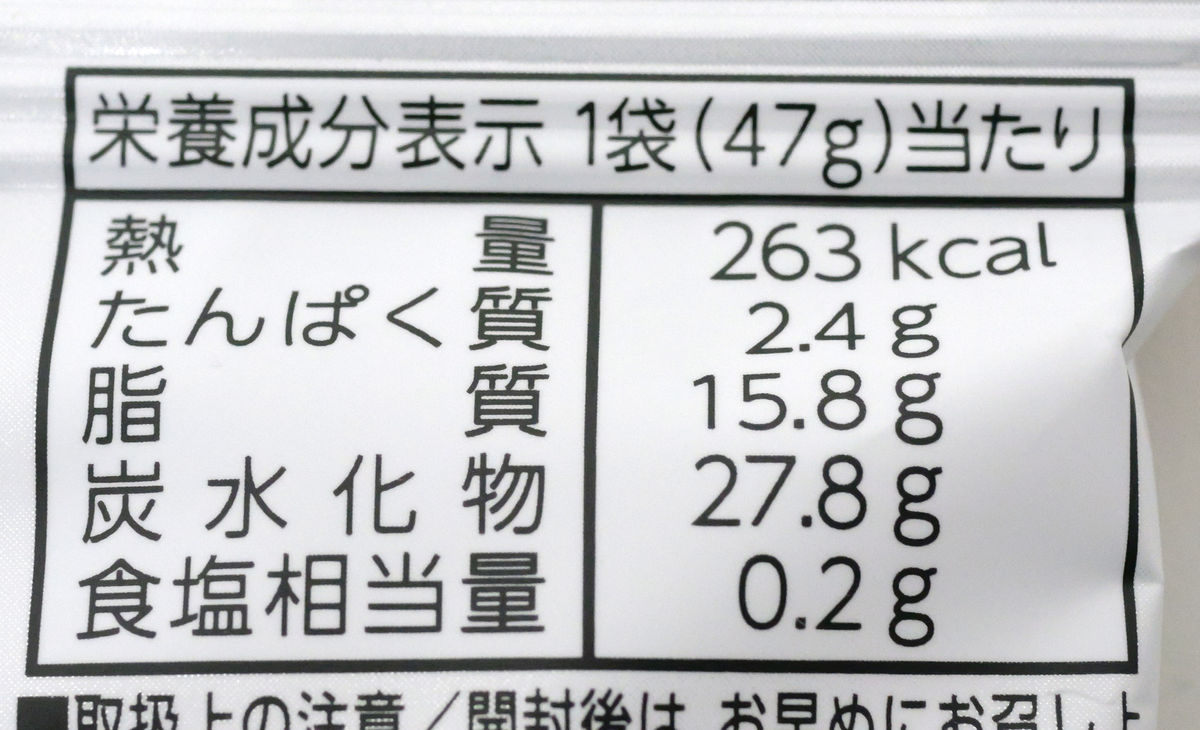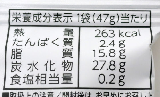 The calorie content is 263kcal per bag.