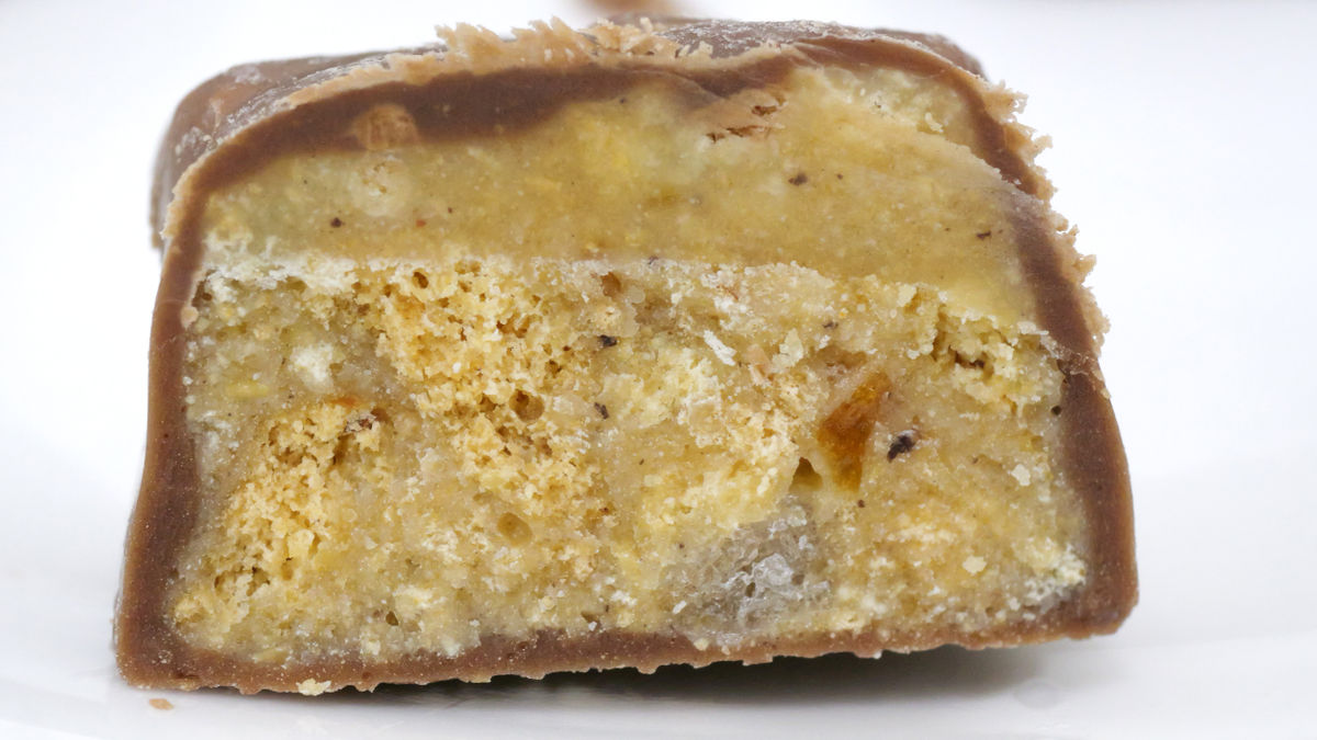 The overall flavor is sweet, with a rich aroma of butter and caramel. The butter gives it a slightly oily smoothness that contrasts nicely with the crunchy caramel chips. It also has a slight bitterness, reminiscent of burnt caramel.