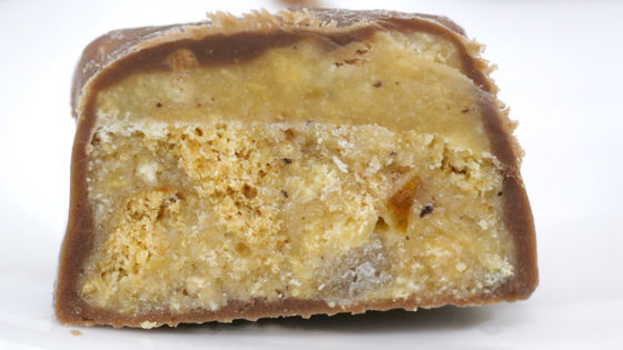 The cross section looks like this. The cookie dough is coated with chocolate.