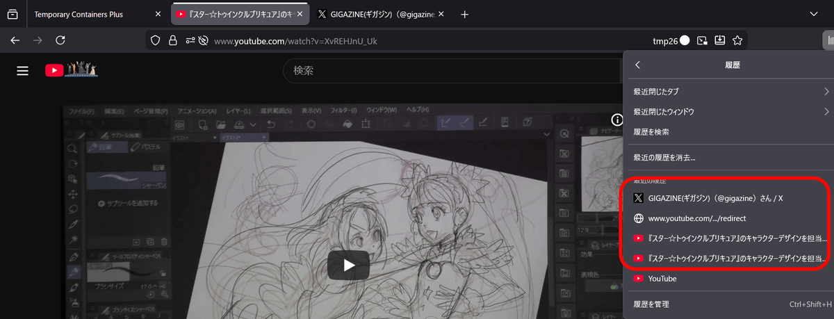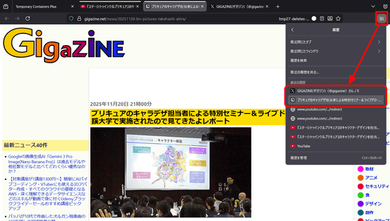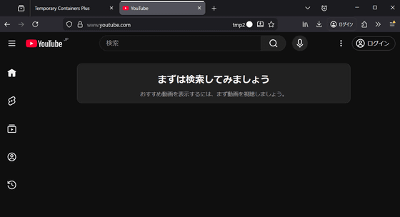 When I opened YouTube in a virtual container tab, it didn't show any recommended videos from my viewing history, and it felt like I was accessing YouTube for the first time. YouTube changes the recommended display on the homepage depending on the video I've watched, so if you want to watch a video but don't want the recommendations on the homepage to change, just open it in a virtual container tab.