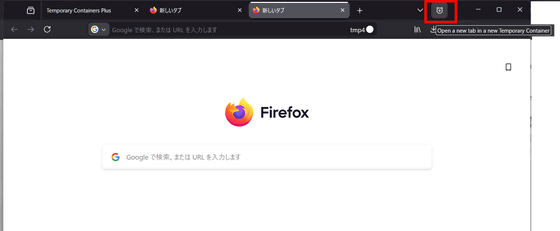 Additionally, if you have Temporary Containers Plus enabled, you will see a clock icon at the top of your browser, which you can click to open the virtual container tab.