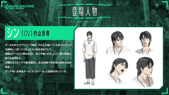 Shin, played by Uchiyama, is a member of the e-sports team 'Carbuncle,' which Kairi joined. He has a connection with 'Gandir,' the team of Ajima, the strongest player of the Dark Machine, which effectively controls Chiba City.