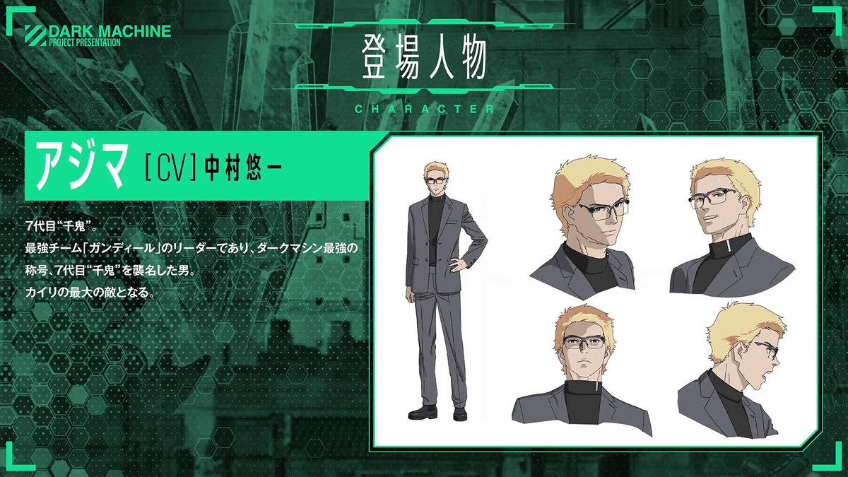 Yuichi Nakamura will play Ajima, the 7th 'Senki' who inherited the title of 'Senki,' the strongest dark machine player. He is the leader of the 'Gandhir' and Kairi's greatest enemy.