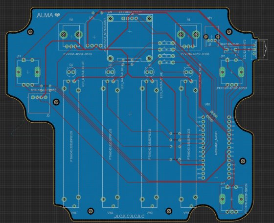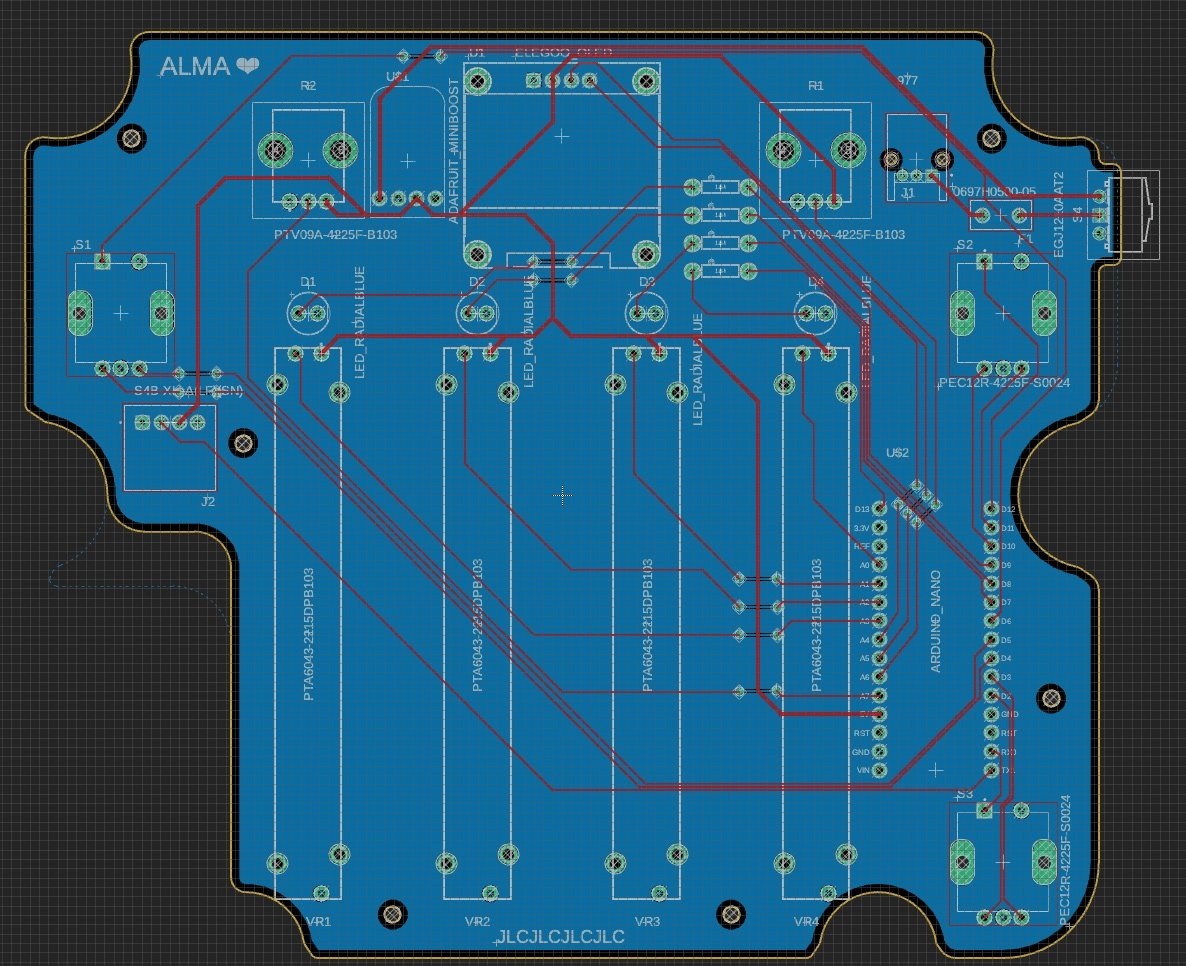 My daughter broke it while using it, and I also wanted to give some as gifts to friends, so I needed to make it more sturdy and easier to assemble. So I decided to switch from a breadboard to a printed circuit board . Again, this was something I had no experience with, so I started by gathering information on YouTube, but I eventually used Fusion 360 to design the printed circuit board as well, and was able to wire the circuit on a two-layer board.