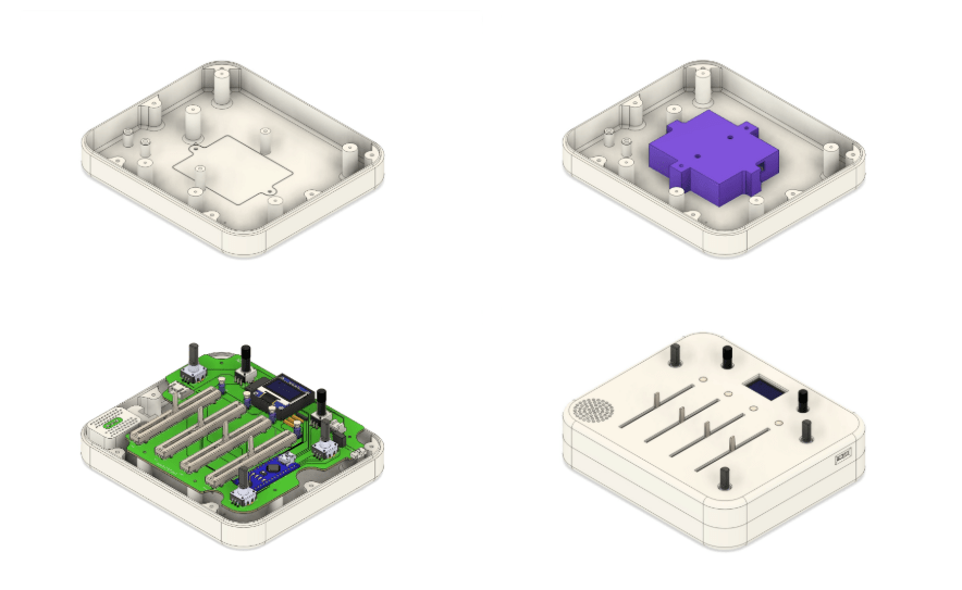 Finally, we improved the housing to better hold the printed circuit board, added a small and neat battery compartment, and added a bezel to adjust the height of the OLED, and the design was complete.