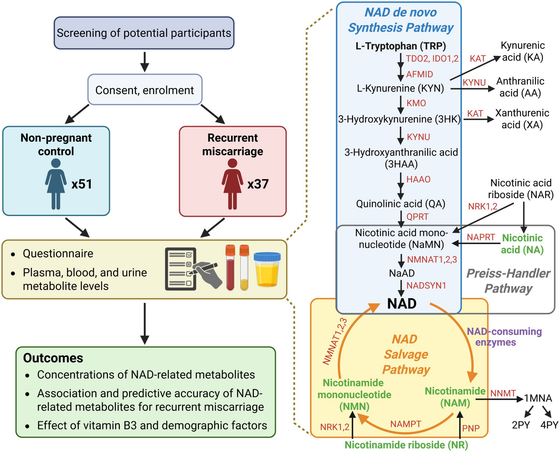- Identifying NAD-related biomarkers that may indicate an increased risk of miscarriage