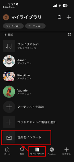 Tap 'Import Music' from 'My Library.'