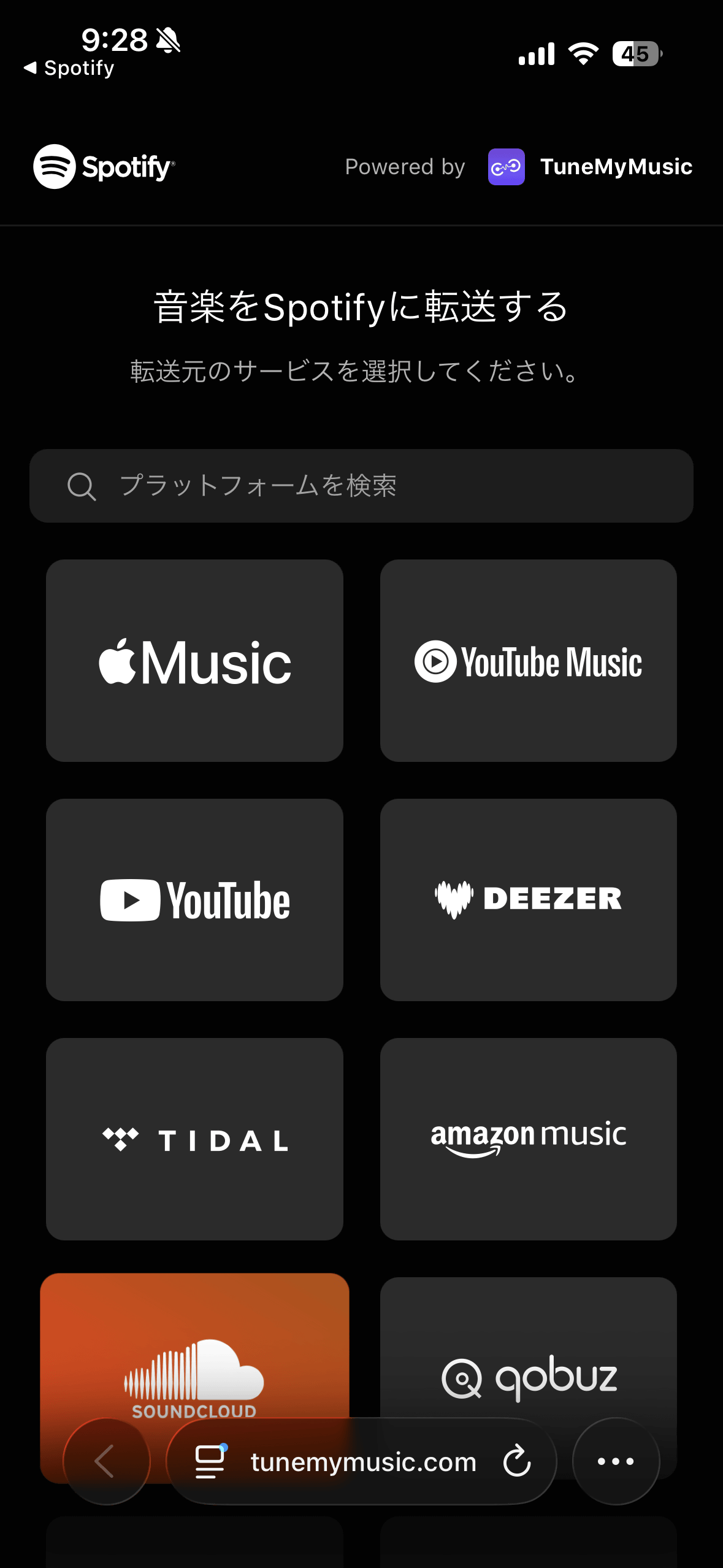 The following services allow you to transfer music to Spotify using TuneMyMusic.