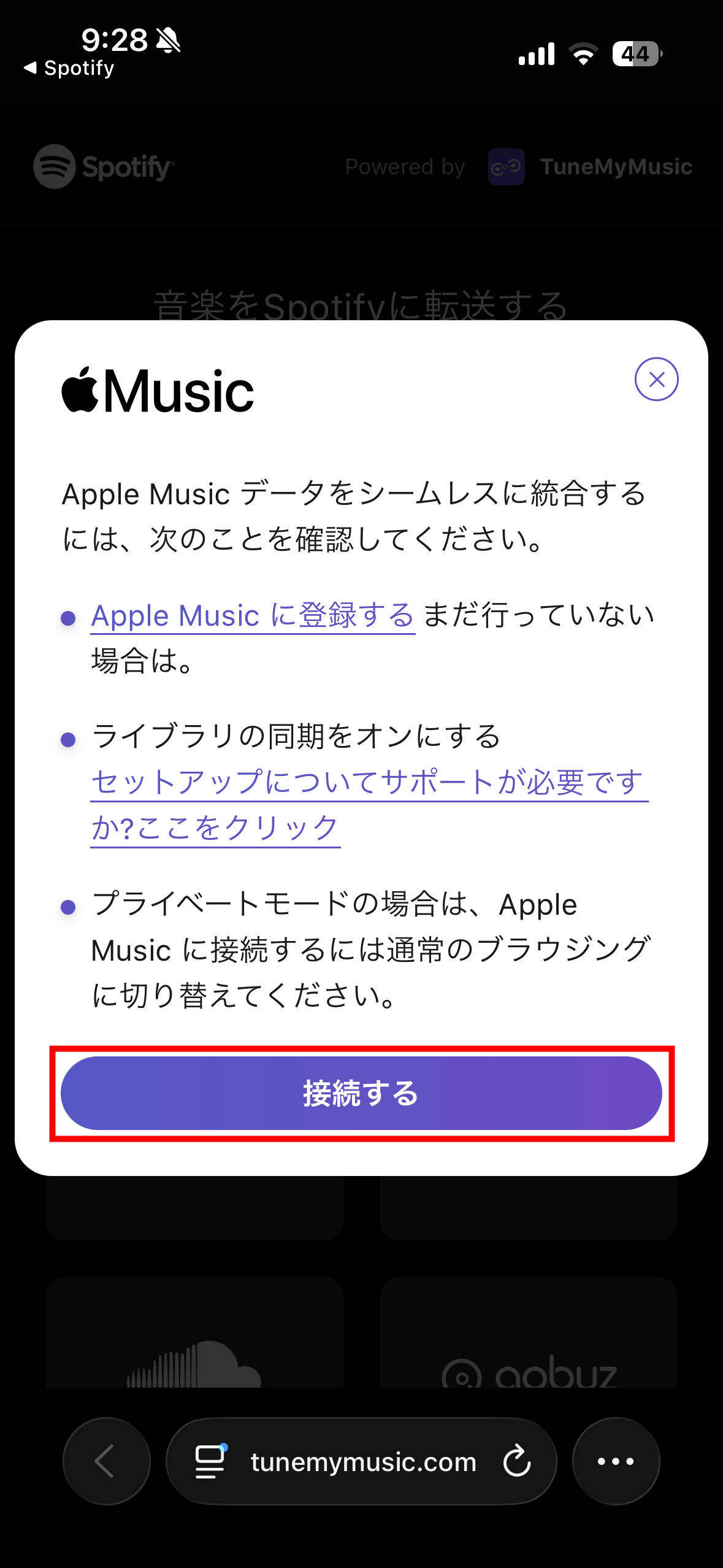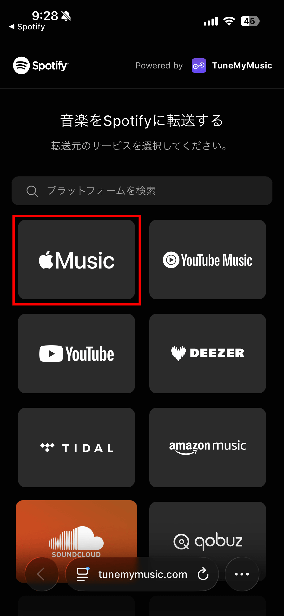 This time, tap the icon to transfer a playlist from Apple Music.