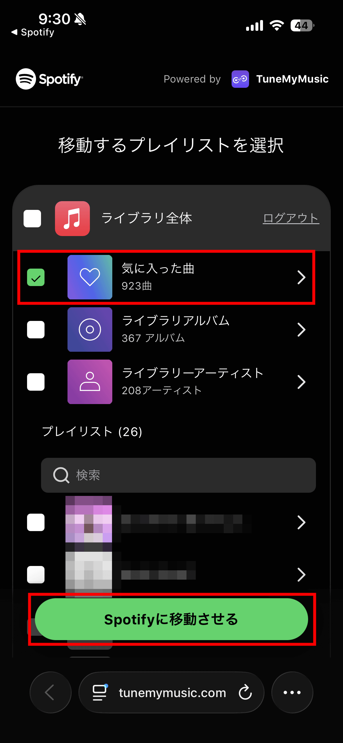 Tap the playlist you want to transfer and tap 'Move to Spotify.'