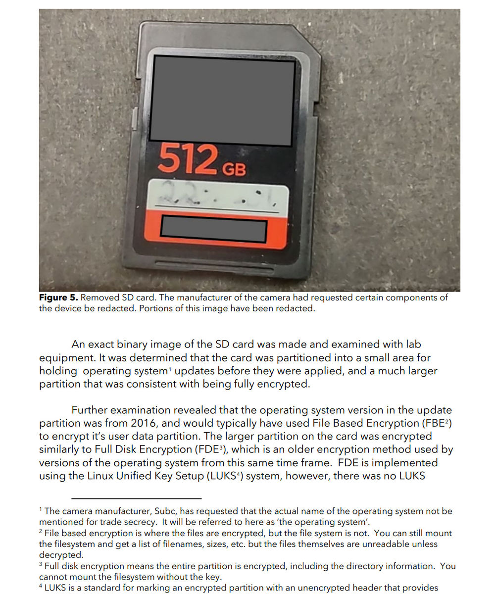 The data on the SD card was fully encrypted, and impact damage from the accident had damaged multiple components, including the board's connectors and microcontroller, making data extraction extremely difficult. The team removed the NVRAM chip, which likely contained the encryption key, and created a binary copy of the SD card and a replacement SOM board. Working with SubC Imaging and the National Transportation Safety Board, the team successfully accessed the contents of the SD card using the manufacturer's proprietary equipment and procedures.