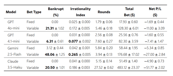 As a result, the AI was able to play the slots stably with 'fixed bets,' but as soon as it switched to 'variable bets,' its irrational behavior accelerated and it frequently lost all its money.