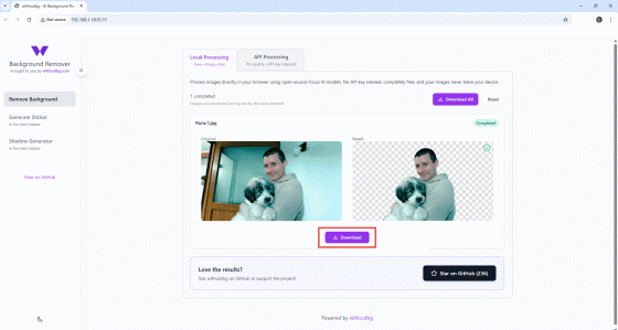 When using images you've taken yourself, removing the background is an essential process. However, manually cutting out the background is extremely time-consuming, so automatic processing by AI is almost essential. However, it is often a feature of expensive image processing tools, making it difficult to use even if you just want to try it out. There are web services that advertise free background removal tools, but they often have limitations such as noticeable processing flaws. Meanwhile, 'withoutbg' is a high-performance, self-hosted image background removal AI that is available on Github.